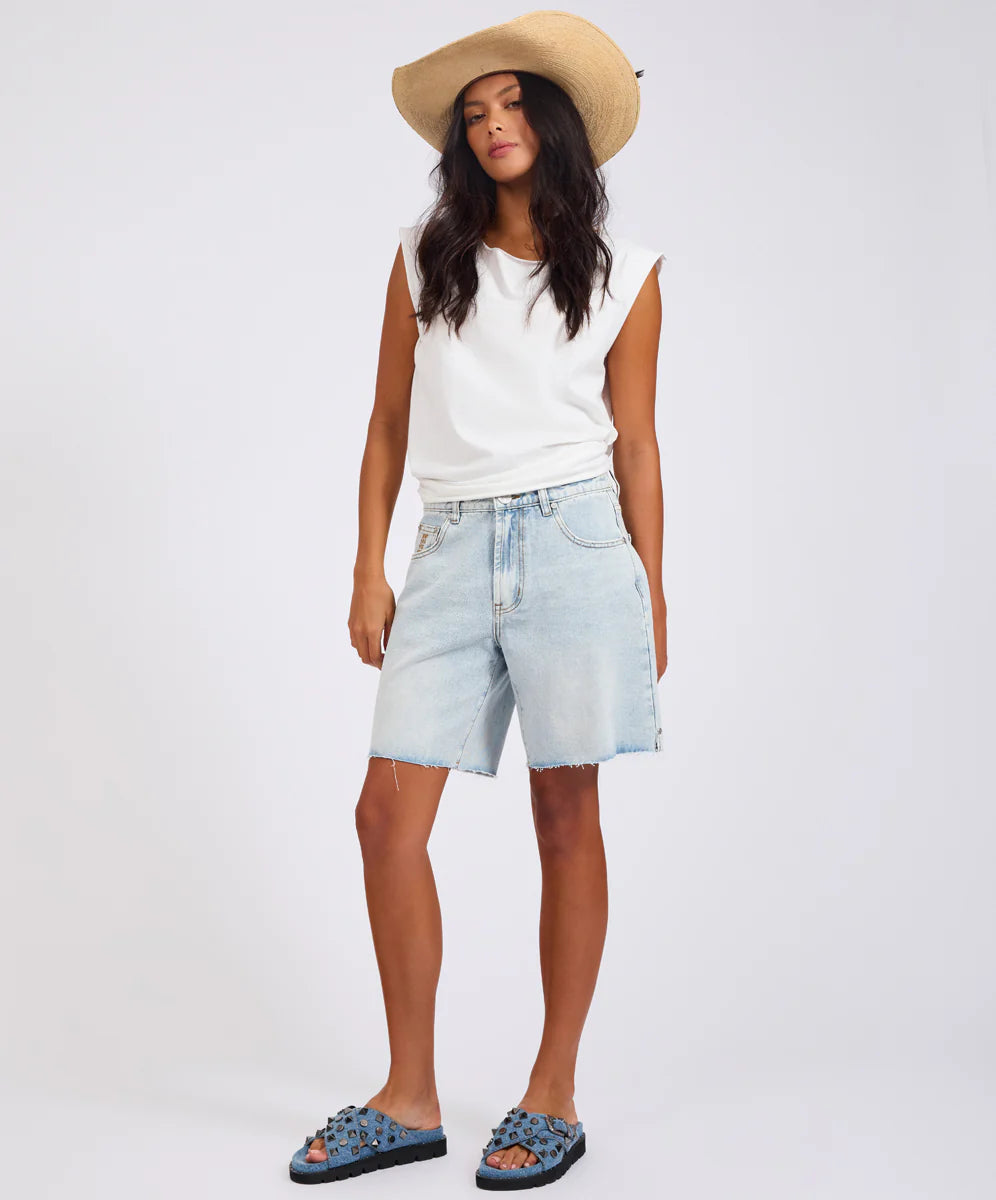 The BLUE LATTE JACKSON MID WAIST WIDE LEG DENIM SHORTS channel true 90s denim nostalgia — clean, cool and effortlessly undone.