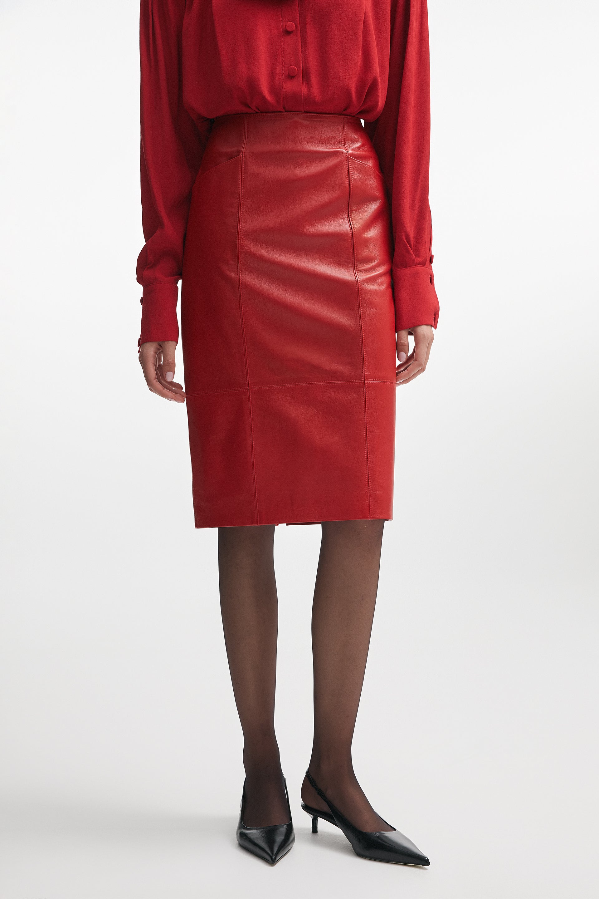 London Leather Midi Skirt