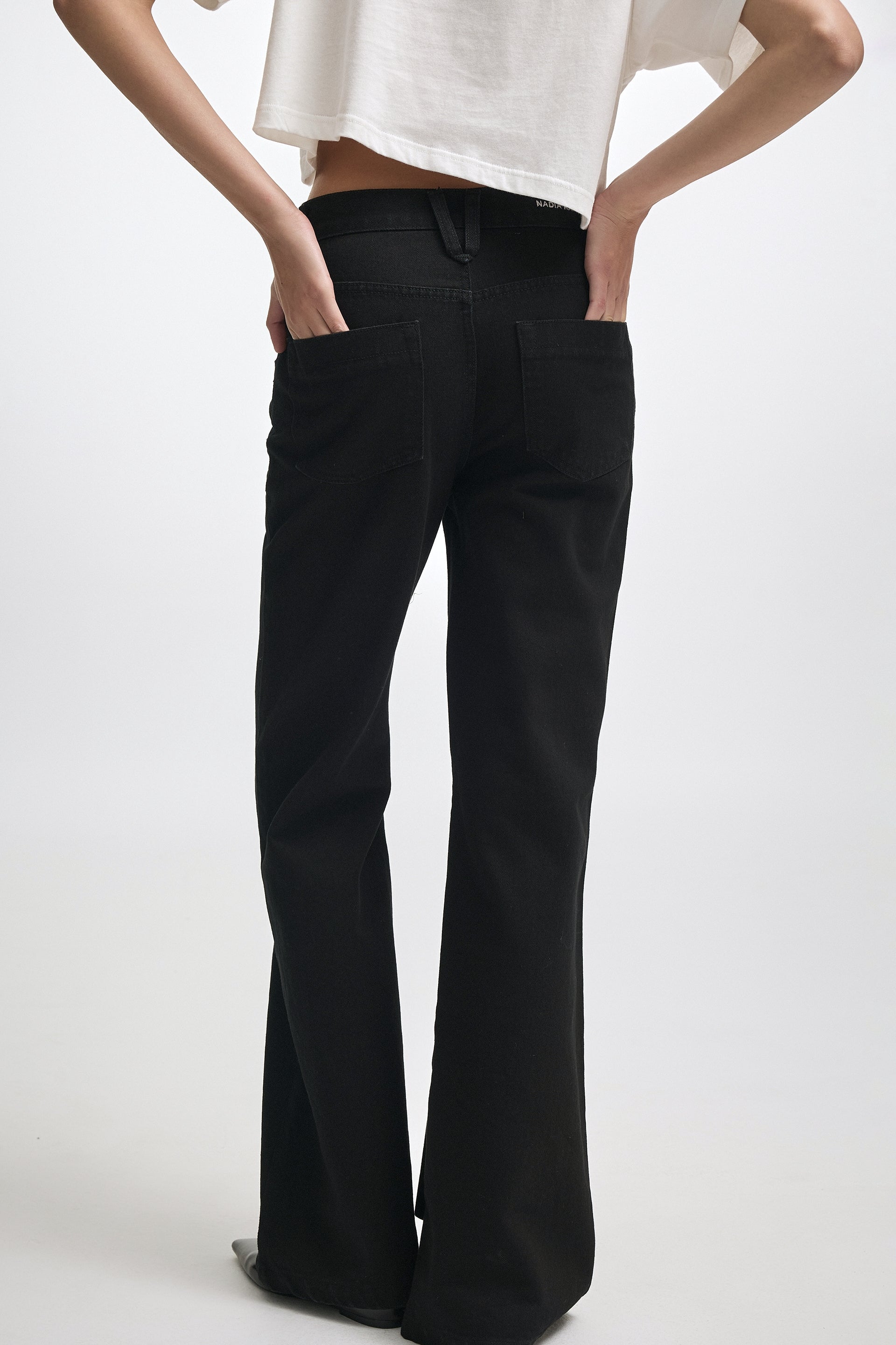 Timeless straight-leg denim trousers made from pure cotton. Featuring a relaxed fit and a subtle knee slit for a modern edge, they combine effortless style with everyday comfort, a wardrobe essential that never goes out of style.