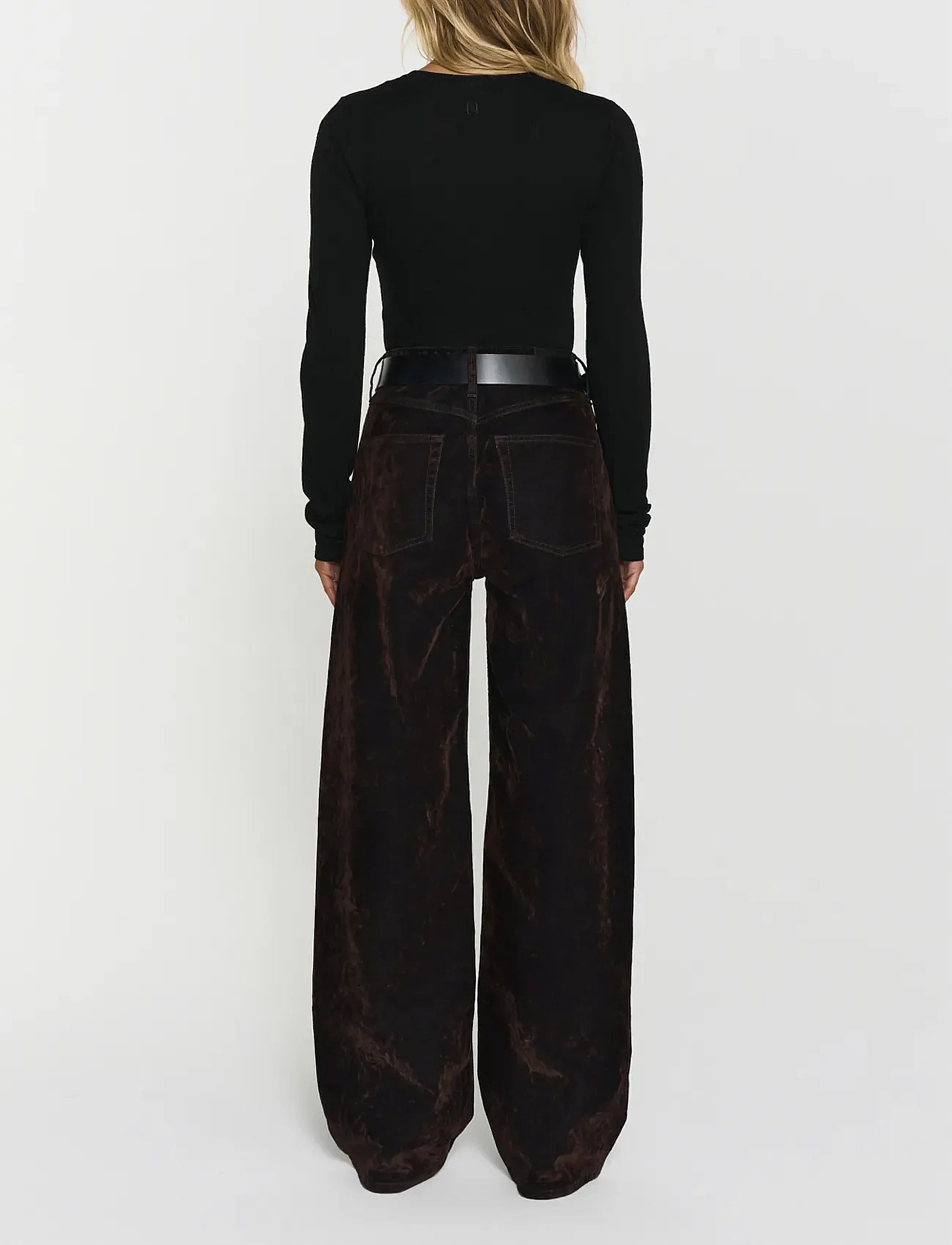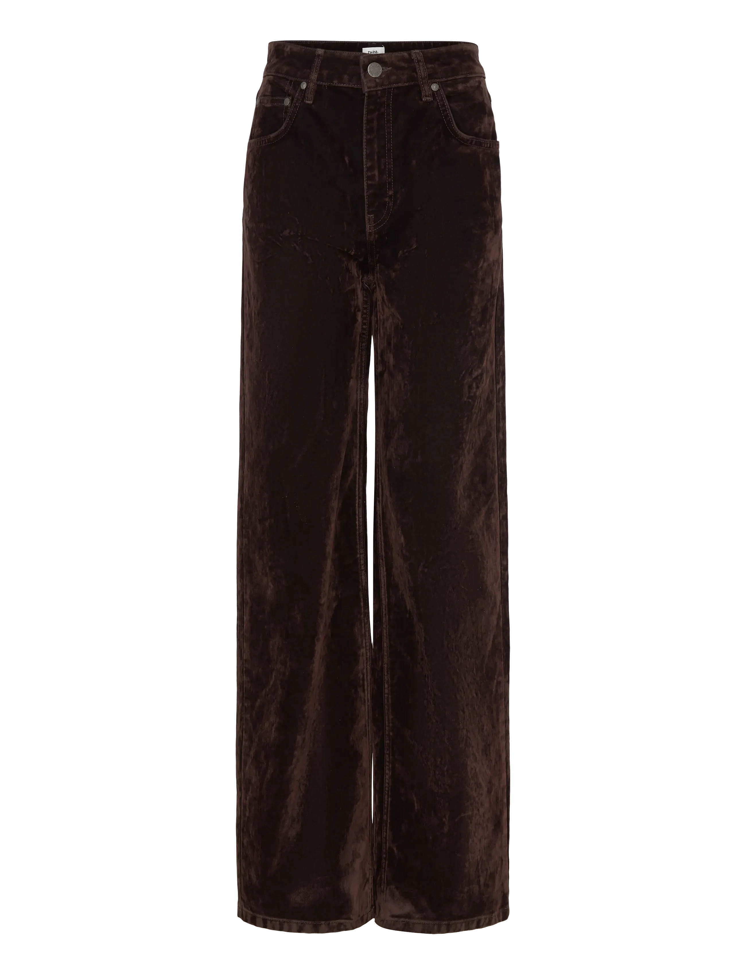 The Turid Flocked Denim Jeans is high-waisted and crafted from 100% cotton, the mocha touch offer a structured fit with soft flocked texture and depth.