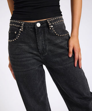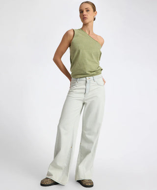 Love Machines Heart Mid Waist Super Wide Leg Denim - Sea Mist Love