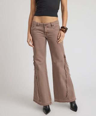Johnnies Low Waist Wide Leg Flared Denim Jeans - Espresso Brown