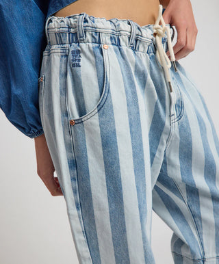 Outcasts Low Waist Drop Crotch Harem Denim Jeans - Beach Club Stripe