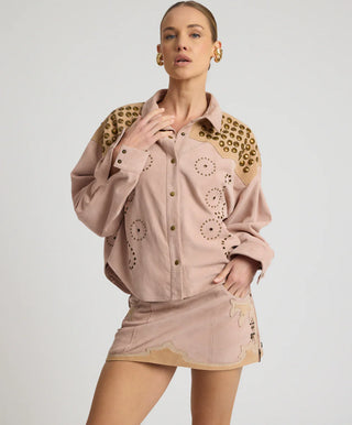 Rodeo Renegade Studded Applique Low Waist Mini Suede Skirt - Dusty Pink