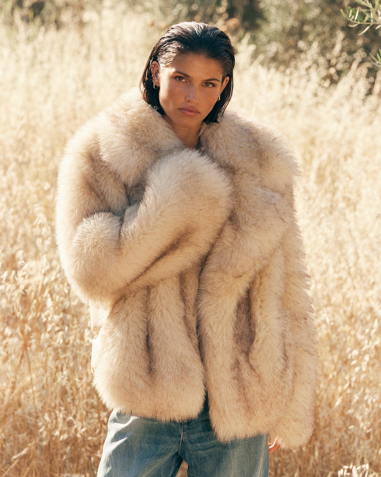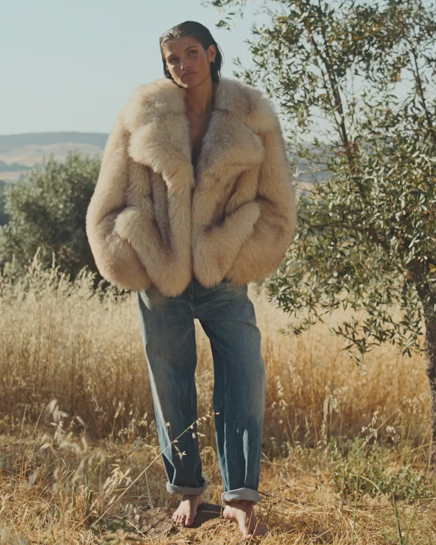 Short Jacket – Faux Fur Fox Effect & Ecru Down