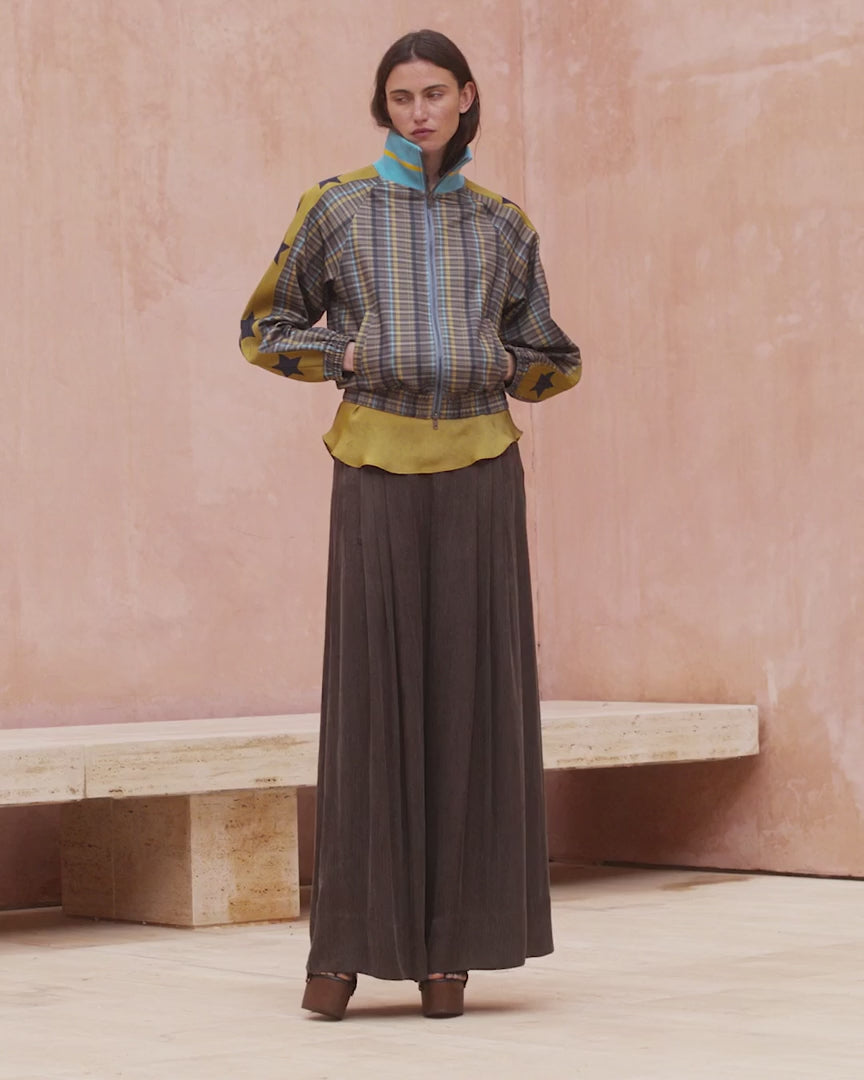 Crafted in soft jersey with a tracksuit feel, it features a printed tartan pattern and strong character finishes.