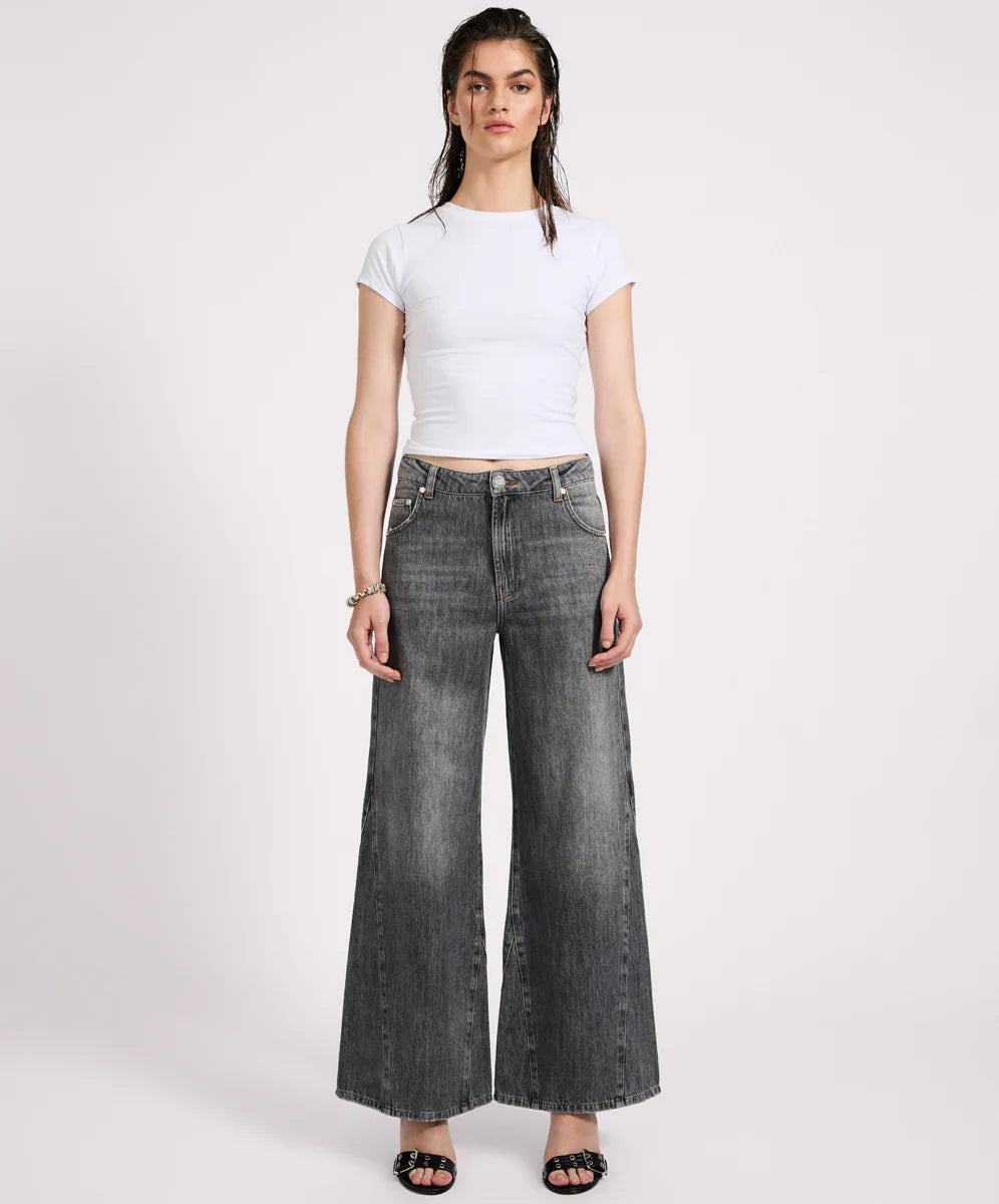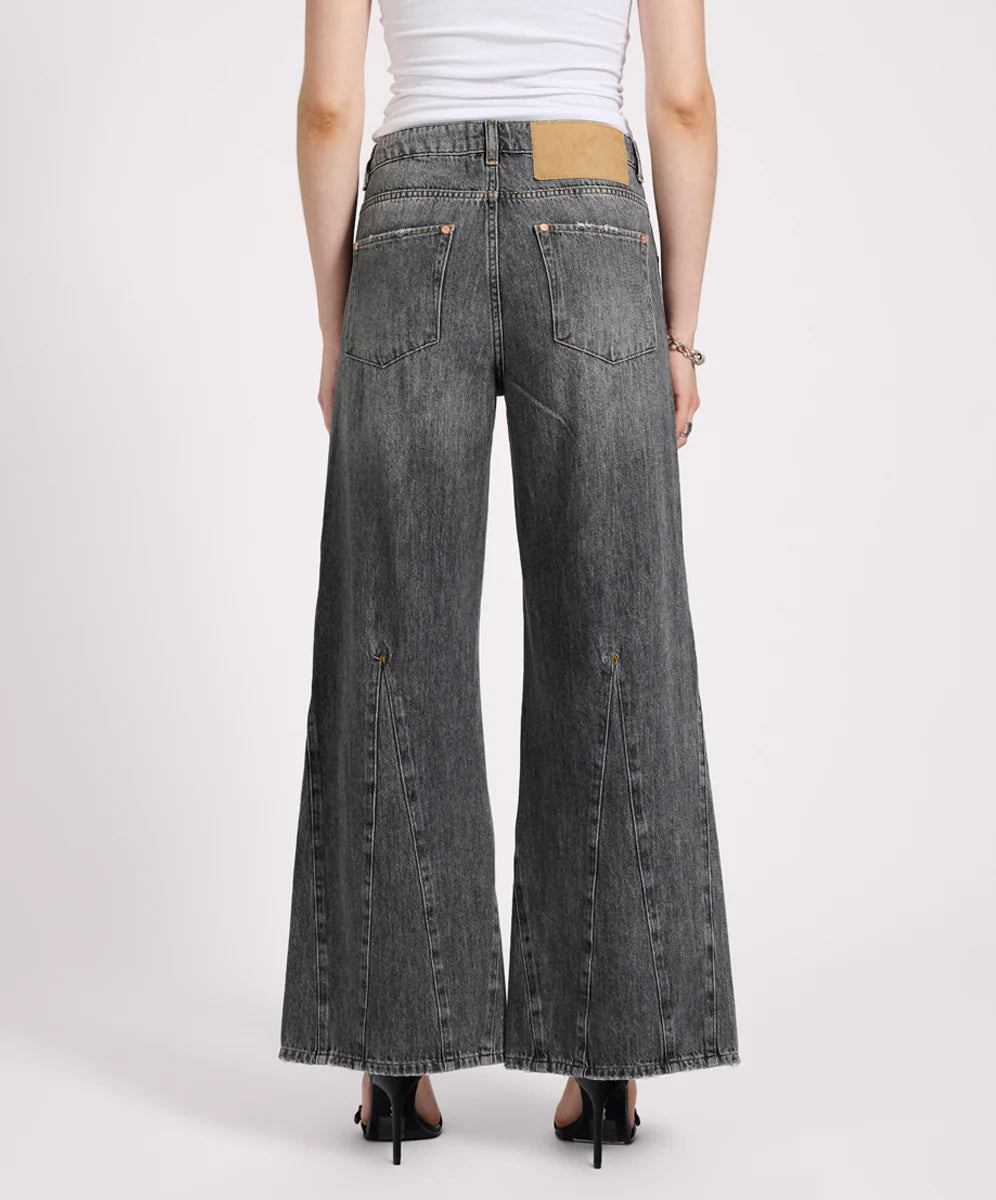 Easy, edgy, and made to move — the CHARCOAL GREY CRUISERS are mid waist bootcut flare jeans with serious throwback energy. Featuring dramatic triangle hem inserts for volume and swing, they’re cut loose through the leg for a flowy, flattering fit. A clean zip fly and raw confidence make these a standout choice across our flare jeans and denim jeans range.