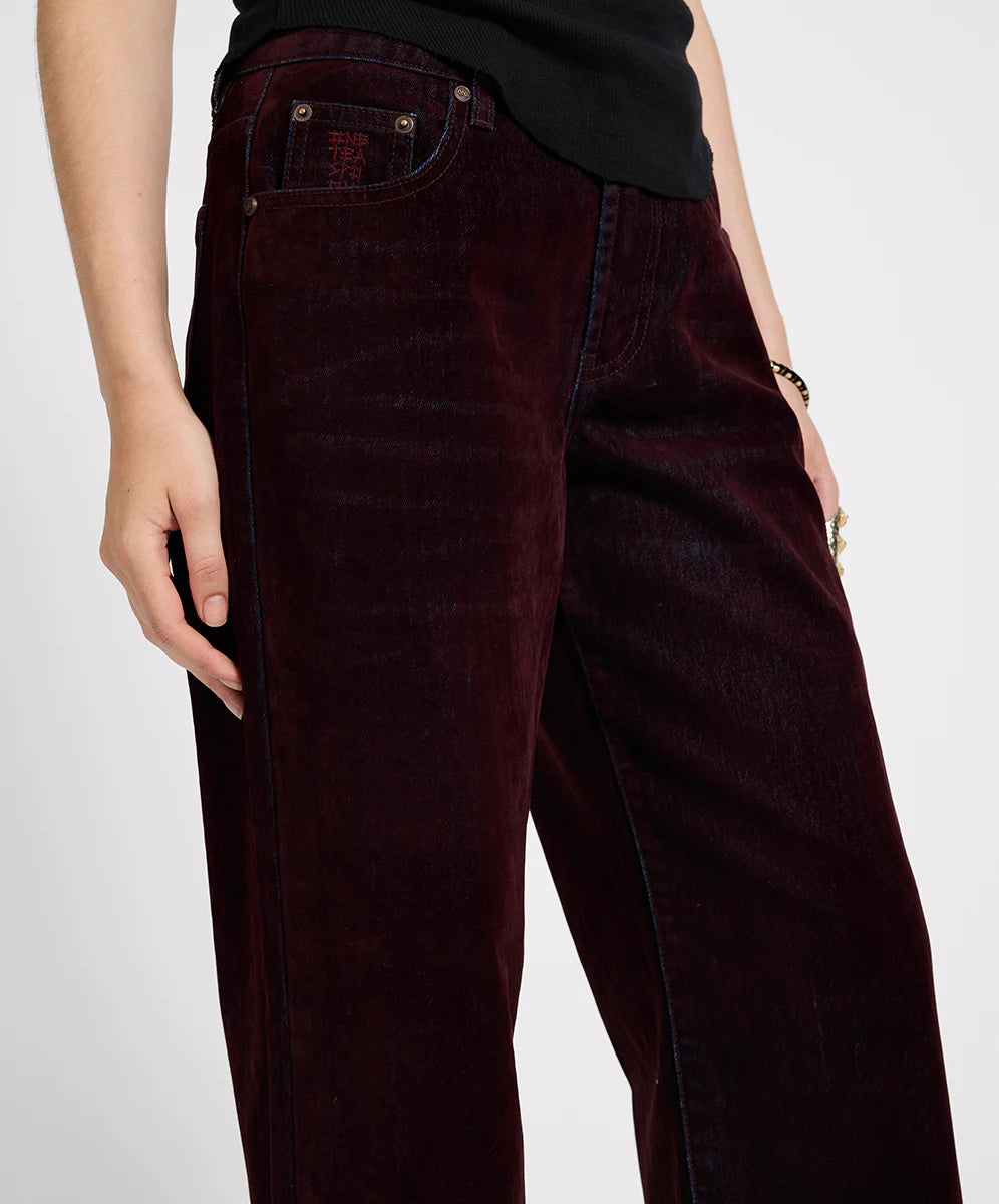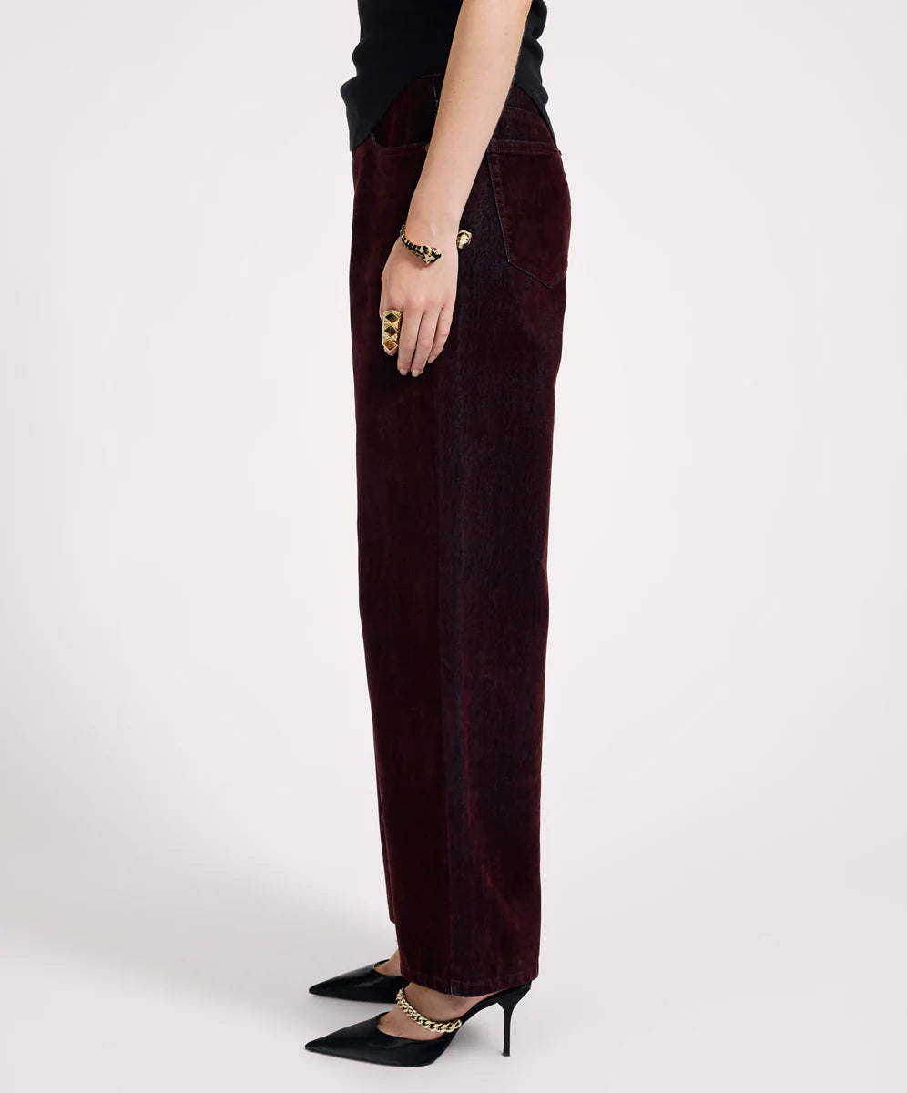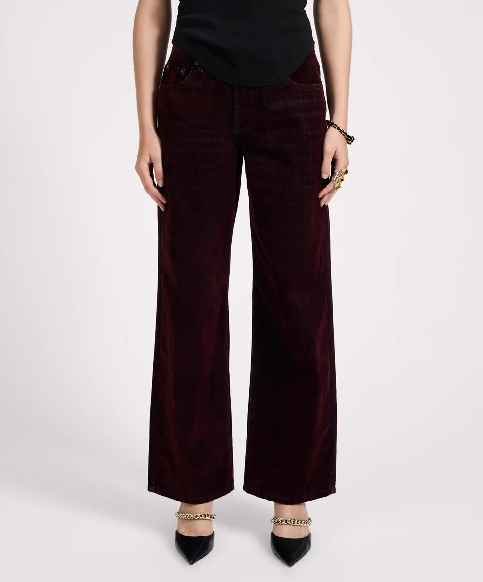 Jackson Mid Waist Wide Leg Velvet Finish Denim Jeans - Flocked Maroon