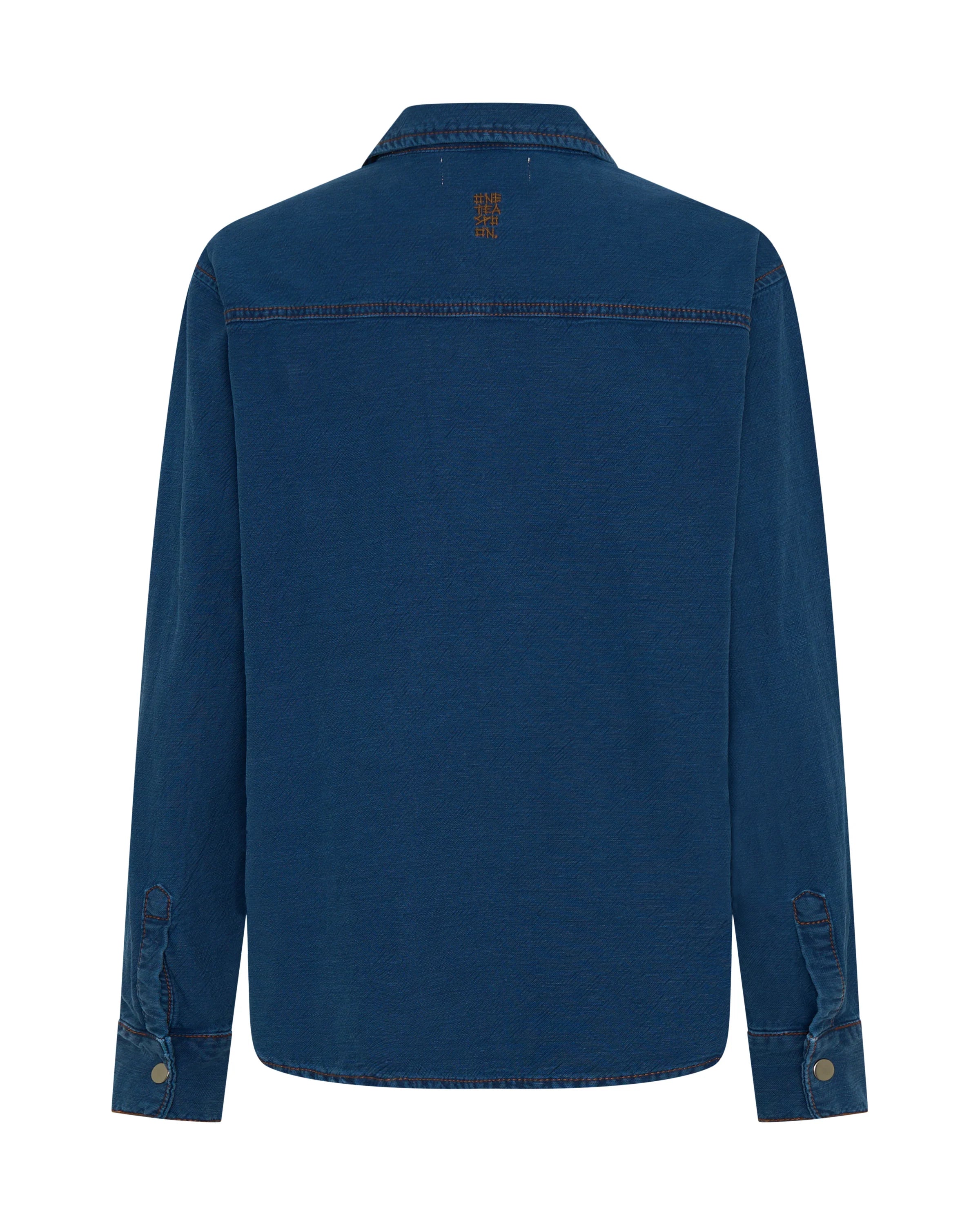 Classic Western attitude, reimagined. The DEEP BLUE WESTERN DENIM SHIRT takes its cue from vintage Americana with flap pockets, contrast seaming, and signature snap fastenings. Made from a cotton-linen blend, it’s breathable with a lived-in drape — part of our signature denim shirts collection.