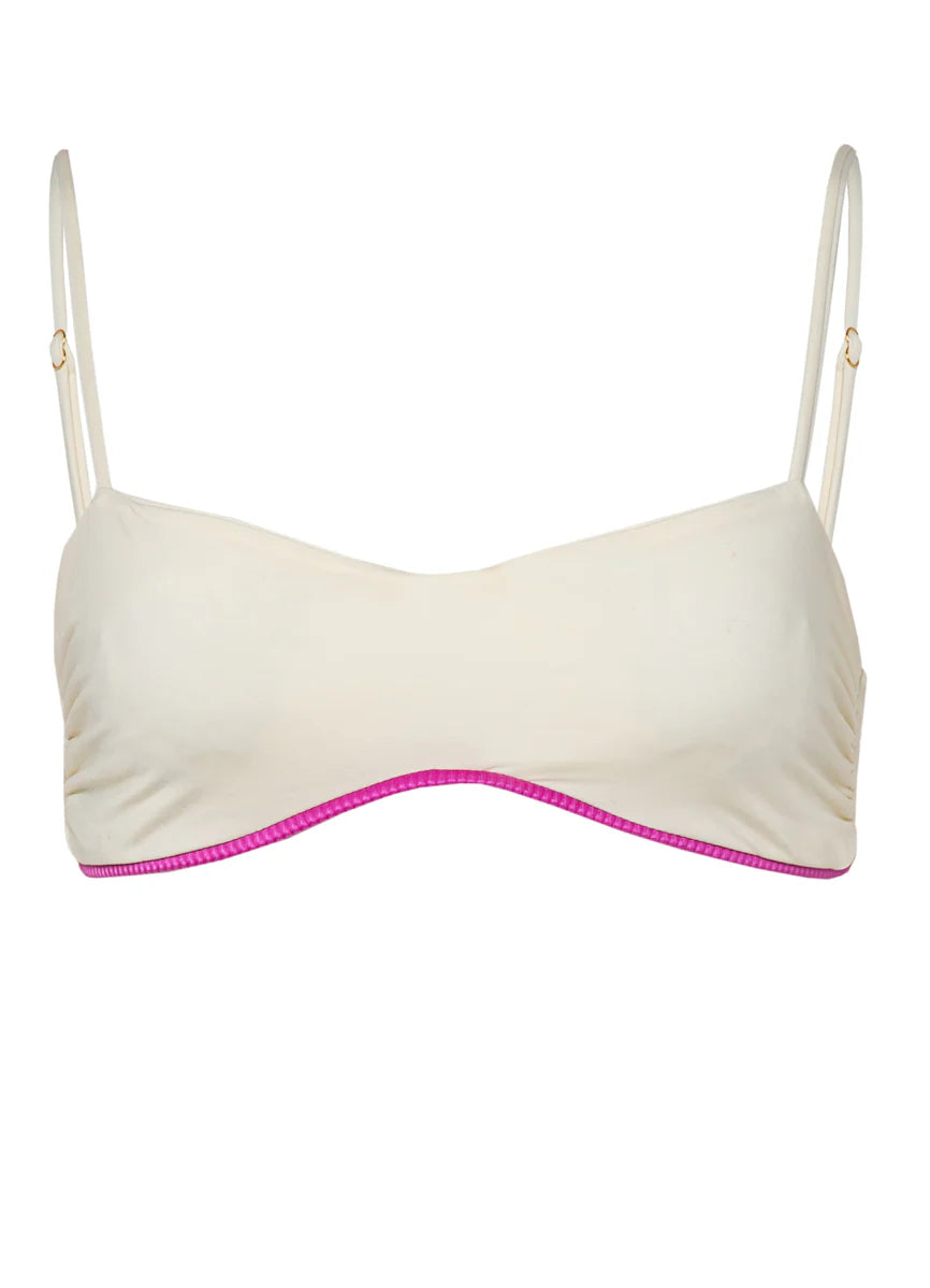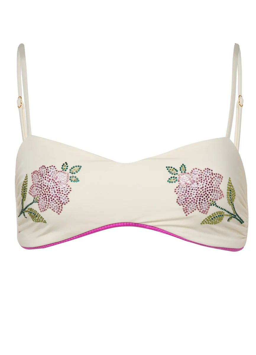 With perfectly placed bloom, and a sculpted look like your favorite pair of cateye sunnies, our Asani bikini top is something special. The Asani has carefree back ties, adjustable straps, contrasting piping, and of course - she's reversible. Now go catch those rays.