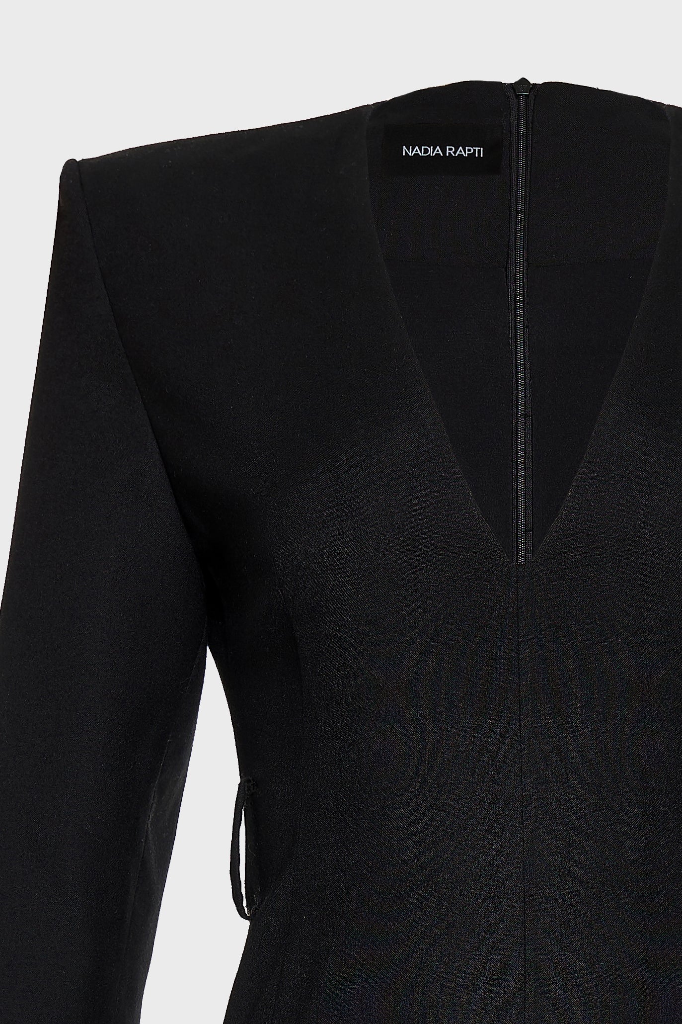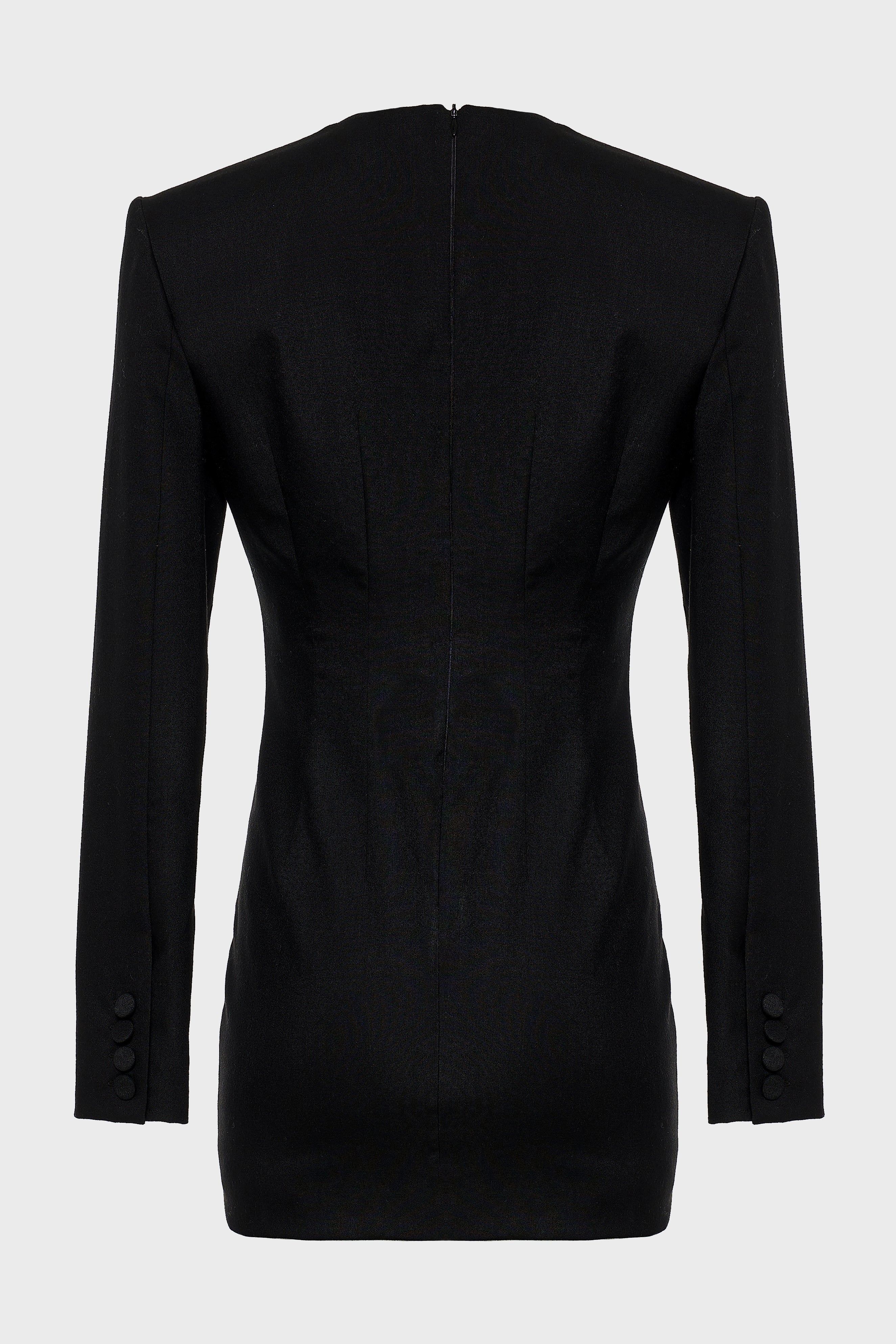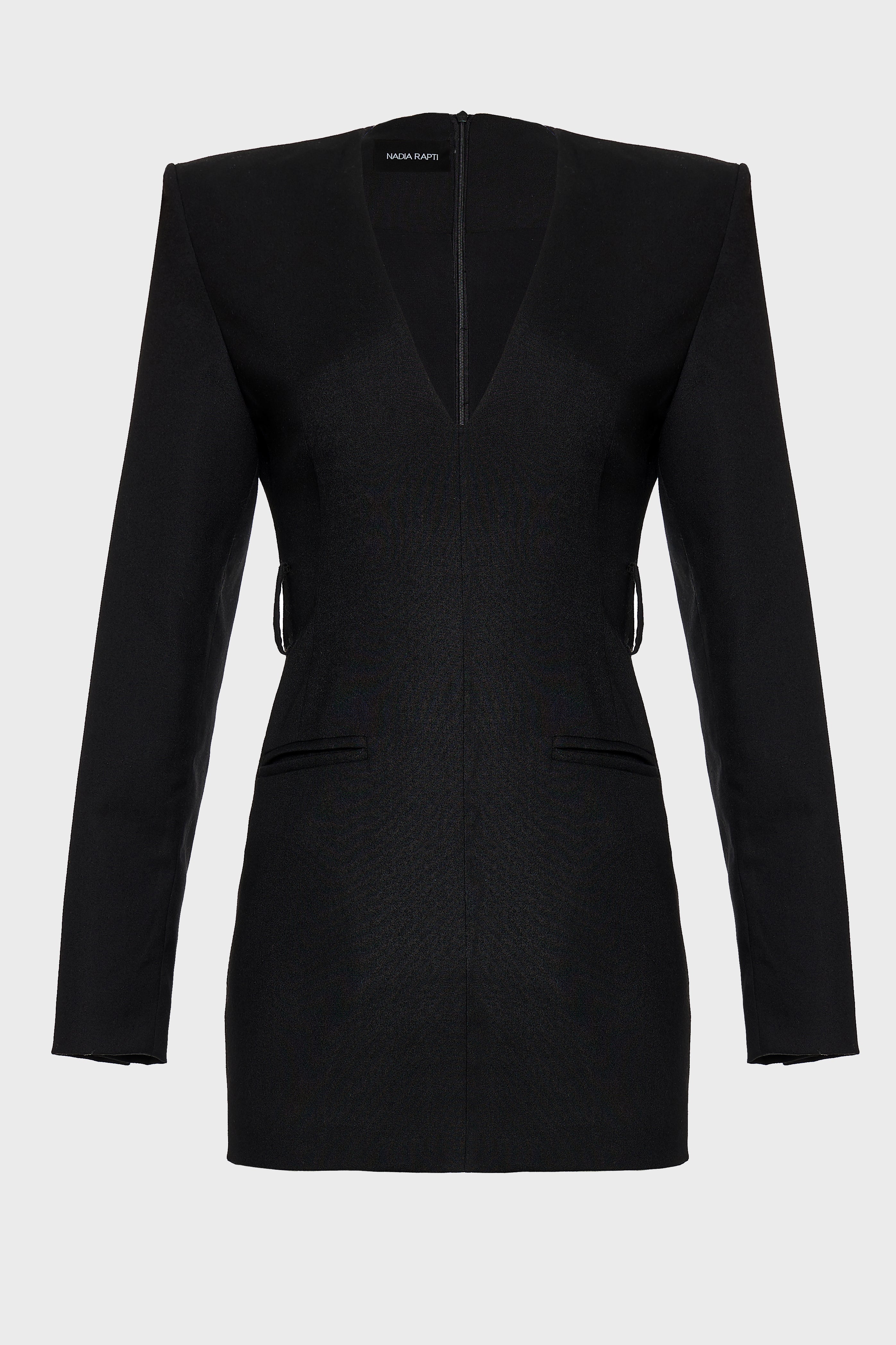 The Night Shift dress has a sculpted mini silhouette with sharp shoulders and a deep neckline. Made to move comfortably with you while keeping its shape, it is designed to flatter the figure. It works for both day and evening looks when you want a bold, modern statement.