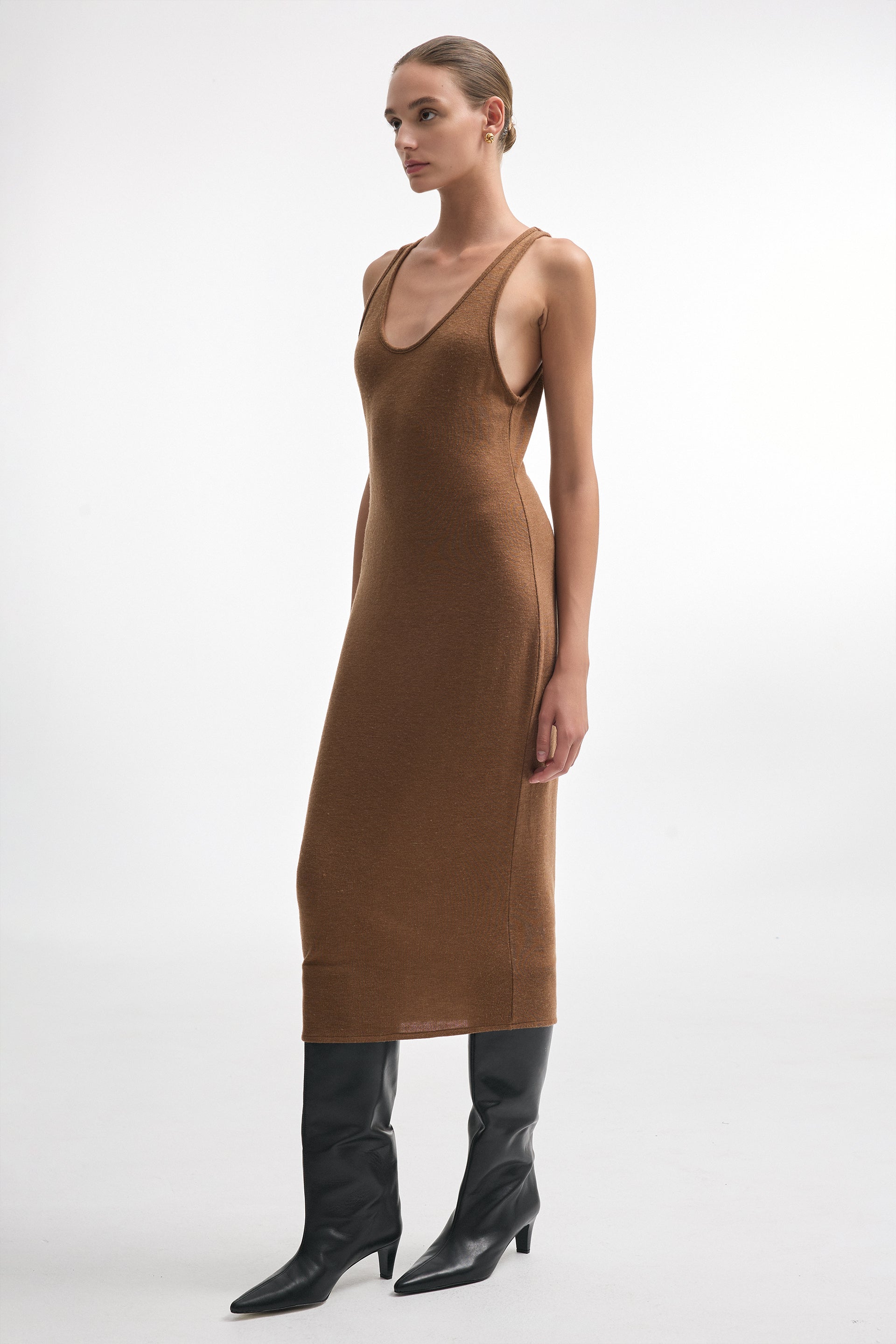 The Whitney sleeveless dress is a modern essential, sleek in shape and refined in detail. Cut in a body-skimming midi silhouette with a round neckline, it’s made from soft stretch fabric that moves with you while highlighting your natural lines. Dress it down with sneakers or sharpen the look with boots.
