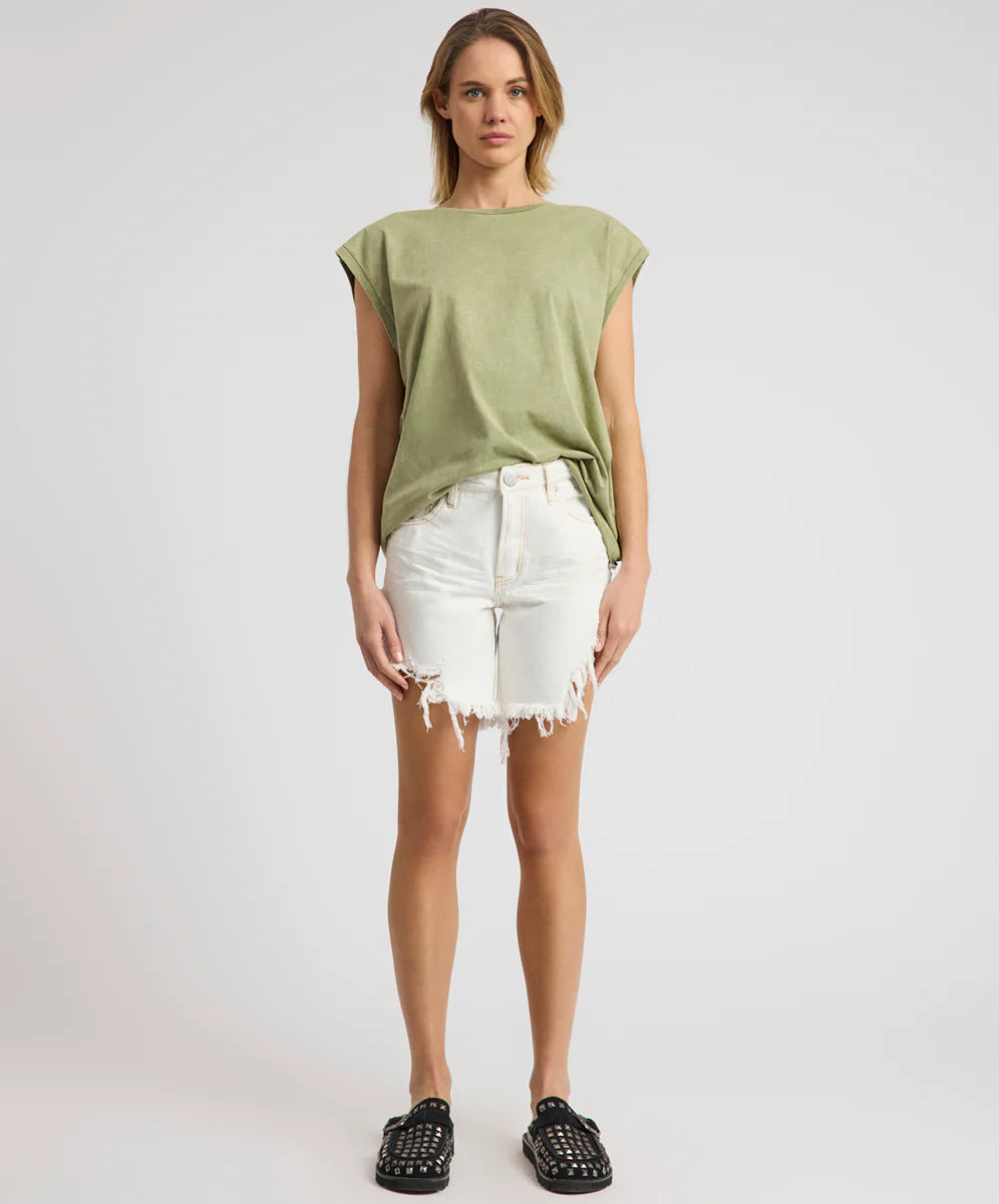 The WHITE BEAUTY FRANKIES HIGH WAIST LONG LENGTH DENIM SHORTS are a modern take on the ultimate boyfriend short. Designed with a flattering high-rise waist and extended length, they balance relaxed attitude with clean structure.