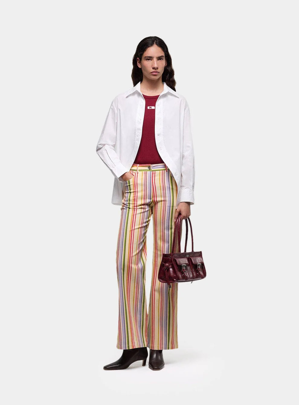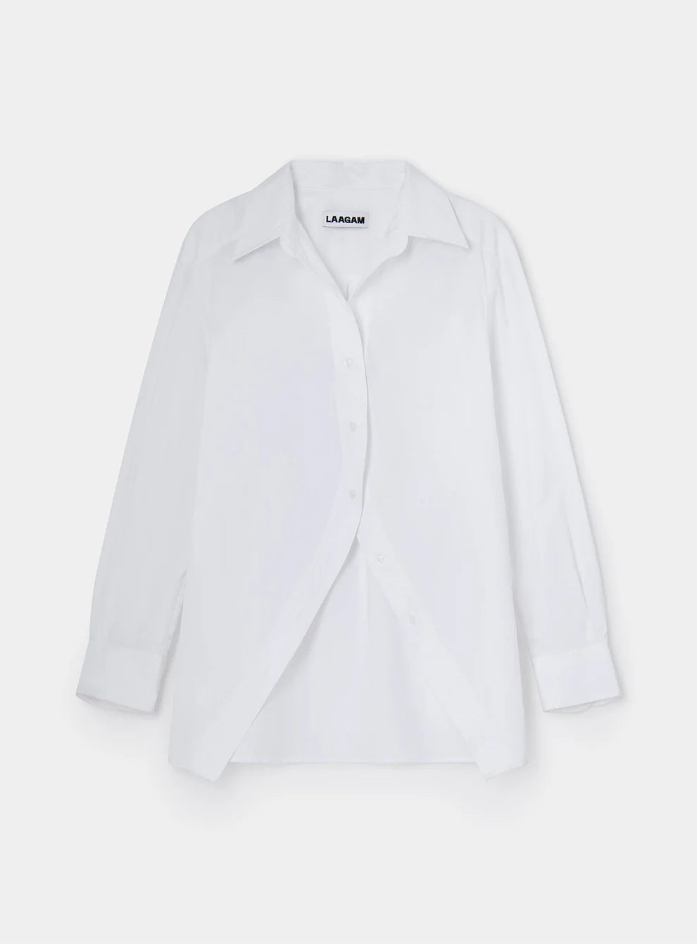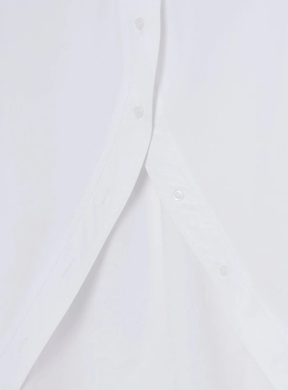 Multi-position cotton shirt. Oversize fit. Lapel collar, french cuffs and dropped shoulders. Asymmetric front button closure.