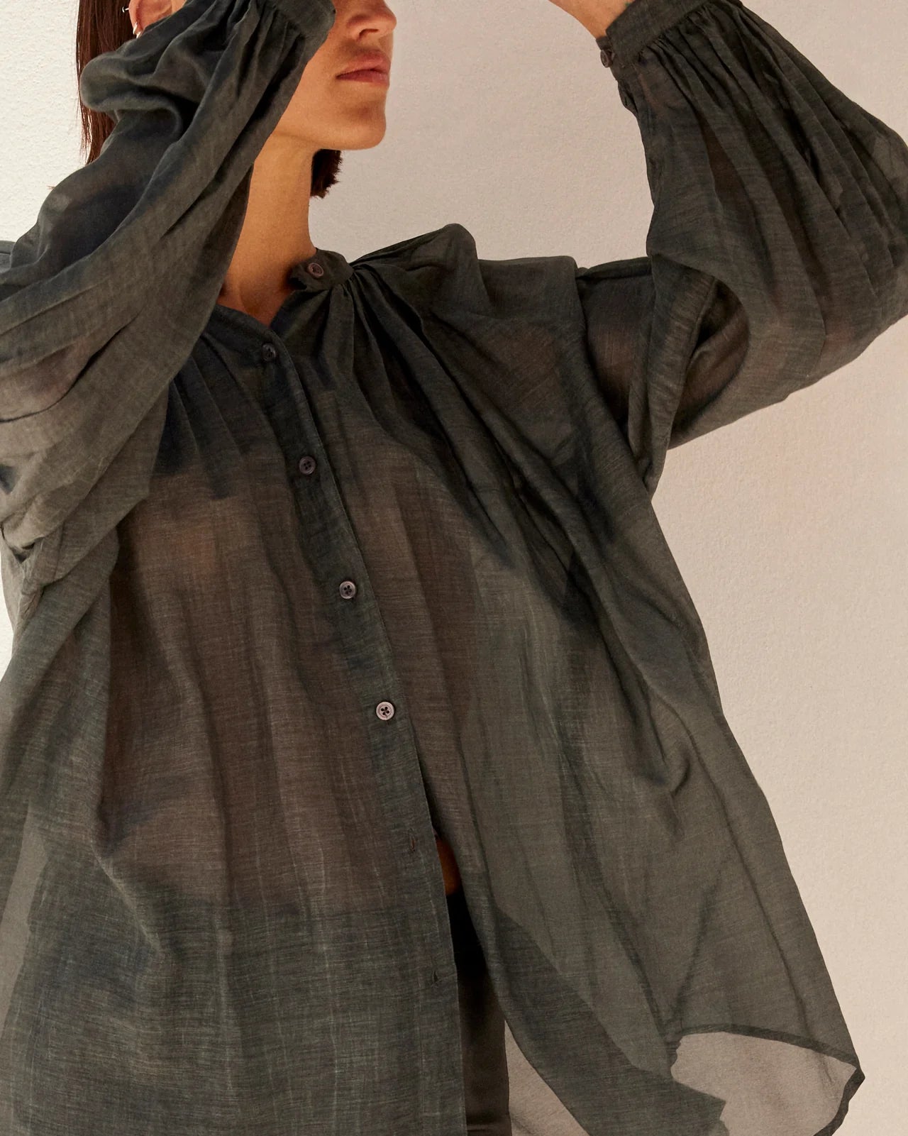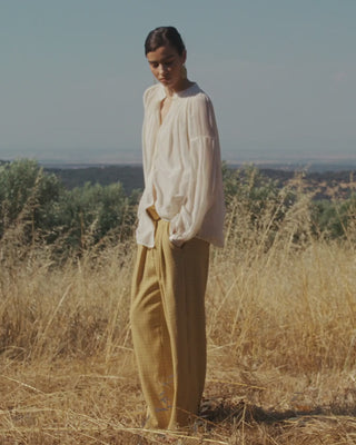 This long shirt in double cotton pigment dye reveals a subtly nuanced ivory tone, made unique by an artisanal dyeing process.