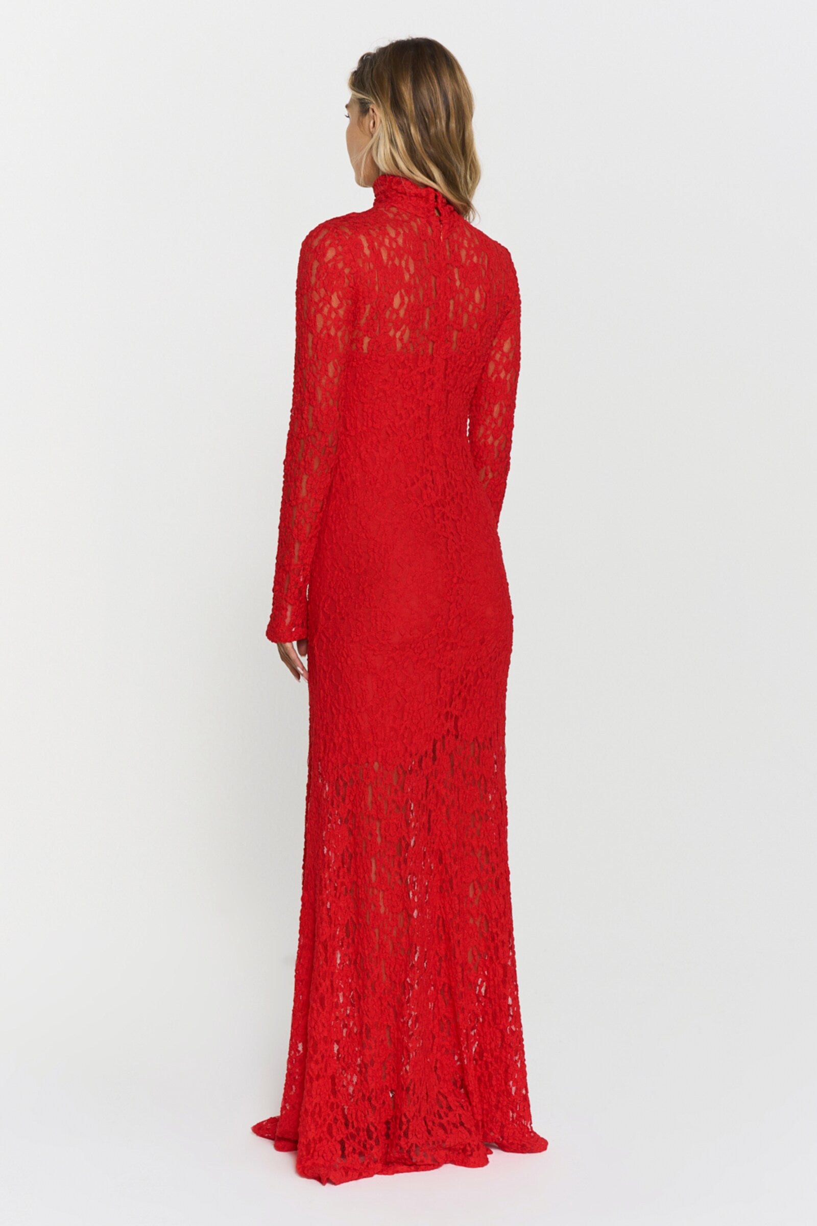 Elevate your evening with our Janasia Dress, a stunning lace gown in maxi length. Featuring a sophisticated turtle neck, hidden zip at the back, and slip dress lining. An undergarment dress is included.